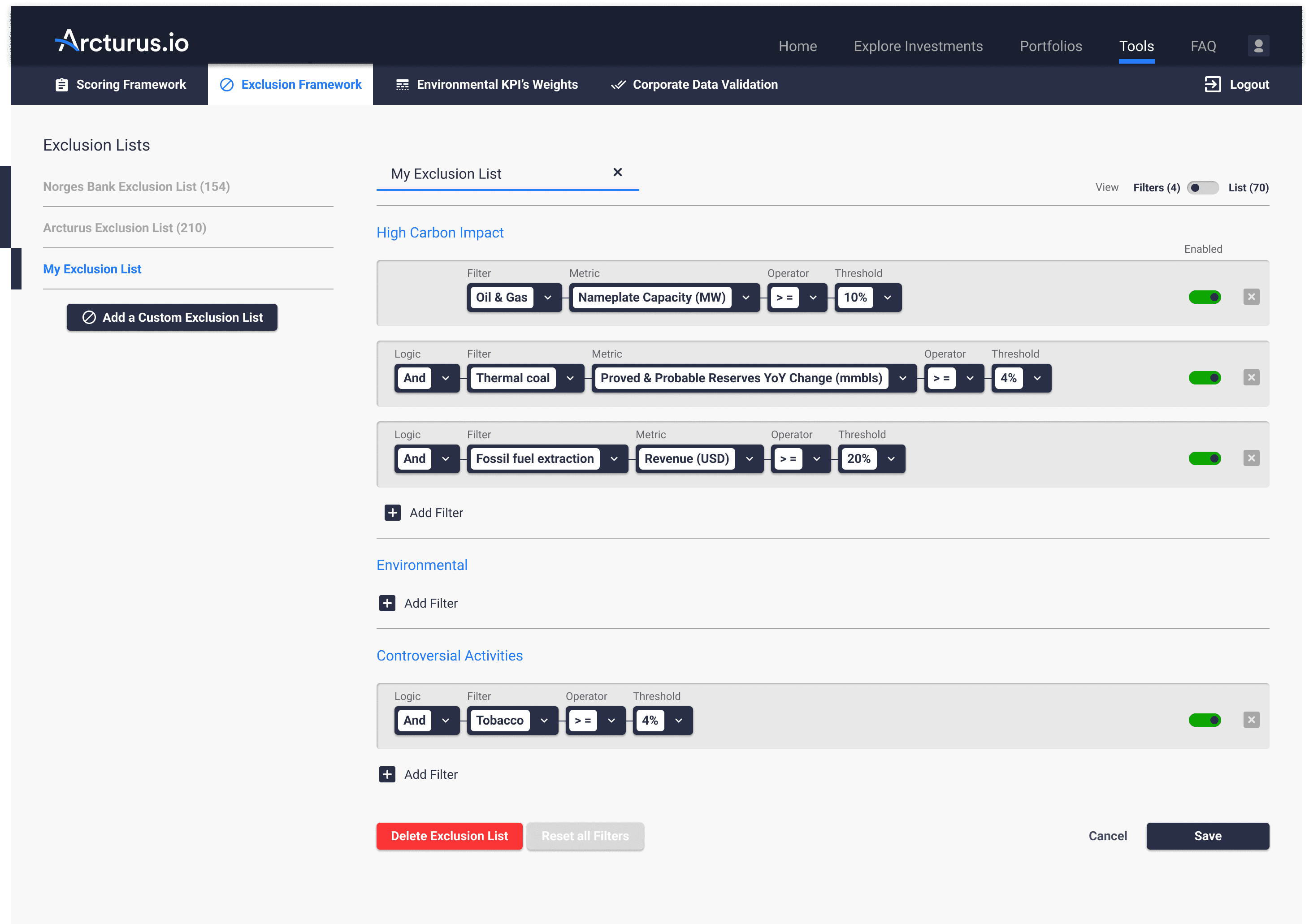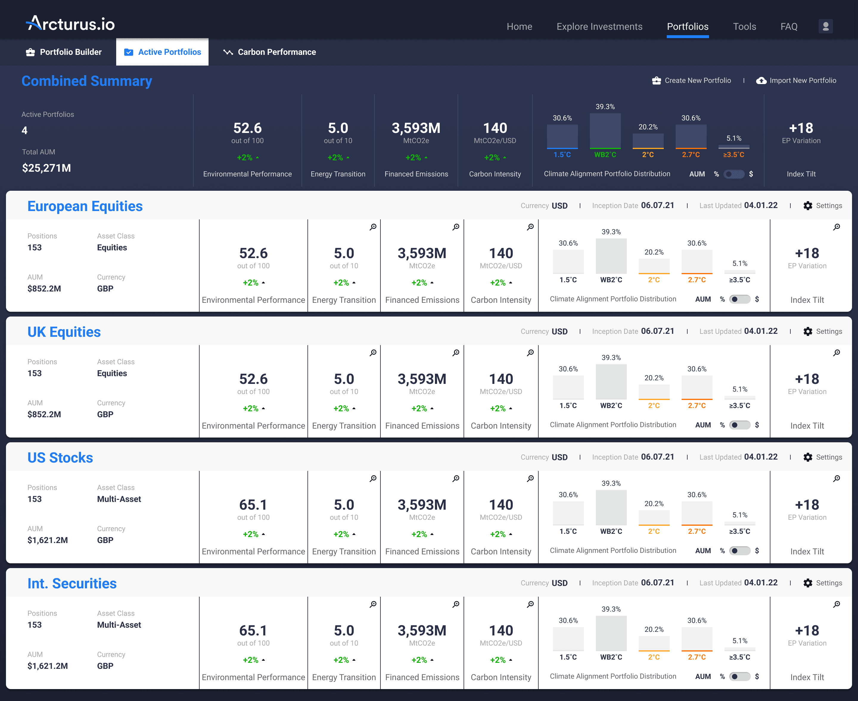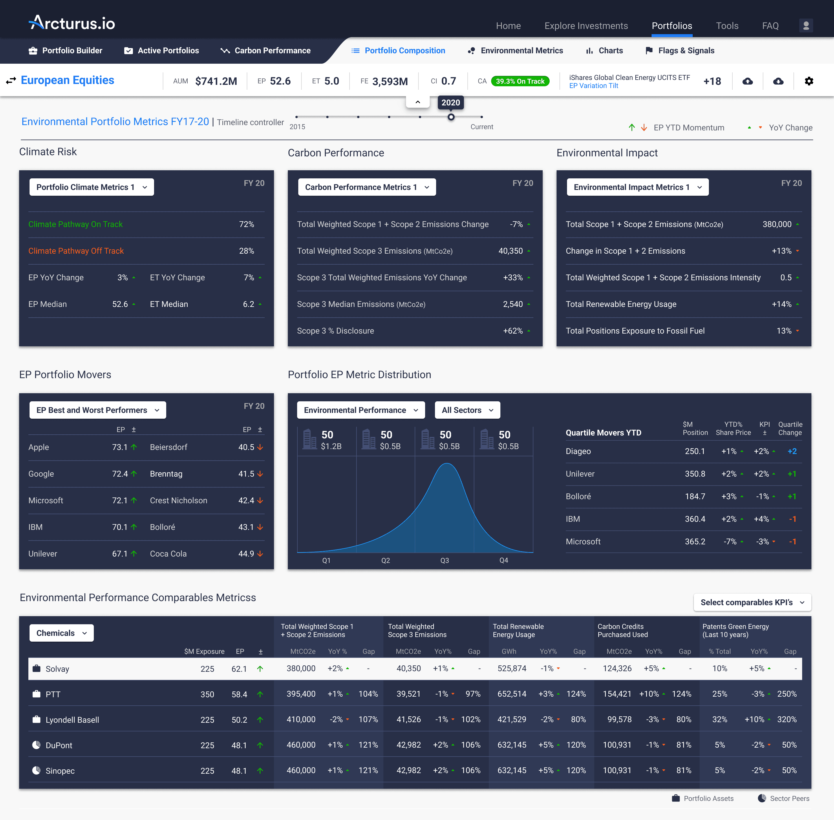 At Arcturus.io, I was responsible for designing a sustainability data intelligence platform that combined climate metrics with financial performance insights. The goal was to give investment teams a clear way to understand how environmental factors shape portfolio outcomes.